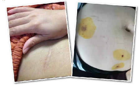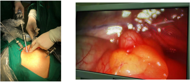 左图是传统手术切口,右图是腹腔镜手术的小切口
