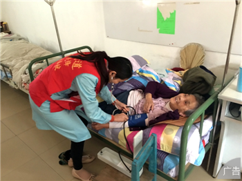 产科护士长沈探望卧病在床老人,并细致的询问身体情况。