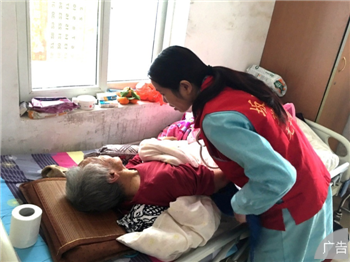 志愿者陪卧床老人聊天,老人还给志愿者们讲述他年轻的趣事