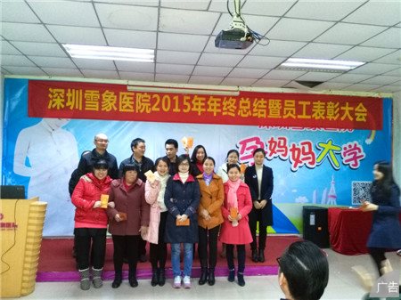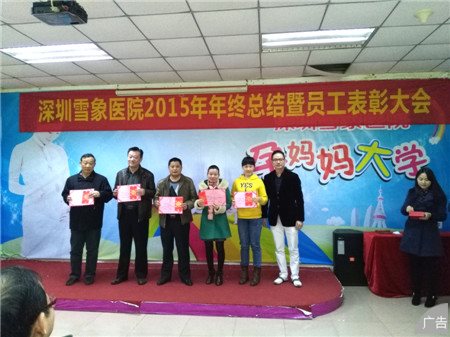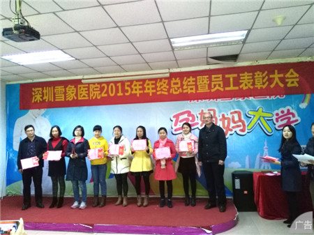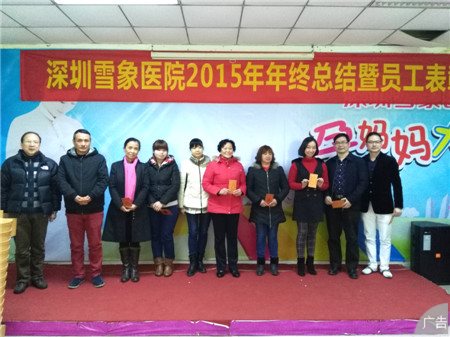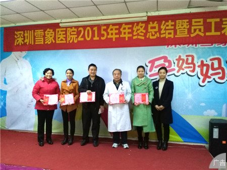 深圳雪象医院领导对2015年度评选的科室、个人和老员工进行了表彰和奖励,感谢他们在平凡的岗位上做出的默默奉献。员工代表上台发表了热情洋溢的讲话,赢得了员工们的阵阵掌声,激励大家在全院营造“争先创优”的正能量氛围,为我院在的一年里不断破解发展难题,持续增强发展活力,推进医疗事业进步增加了强大的动能和力量。