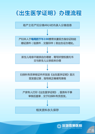 深圳雪象医院生儿出生证办理流程介绍: