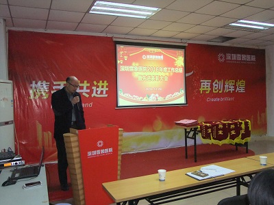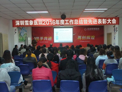 大会由院长助理、办公室主任李建强主持,黄汉荣院长作了《深圳雪象医院2016年度工作总结暨2017年发展规划和工作要点》报告。黄院长从学科建设、制度建设、医疗技术、医疗服务、就医环境、社会效益、院内基础建设等方面对医院2016年所做工作进行了回顾,并重点部署了2017年的主要工作。他强调,要认真总结过去一年工作中存在的差距和不足,统一思想,提高认识,增强危机感、责任感,2017年,我们将以医院质量评价为目标,以精细化管理为手段,积极加强学科建设,进一步规范医疗行为,改善就医环境,改进医疗服务,转变服务观念,使医院各项工作再上一个新台阶。切实内部管理,着力加强制度建设,在促进工作作风转变方面积极探索,努力实现全院员工作风建设的制度化、规范化、科学化。努力建立健全各项制度和奖励机制,使内部管理的各个方面都有章可循,有规可依。着力提高医疗质量,保障医疗安全。全院员工在各自工作岗位上要重规范、重流程、重质量、重安全、重服务,努力实现“医疗零事故、患者零投诉”,为广大患者提供了较满意的疗效和服务,打造一所百姓放心的品牌医院。