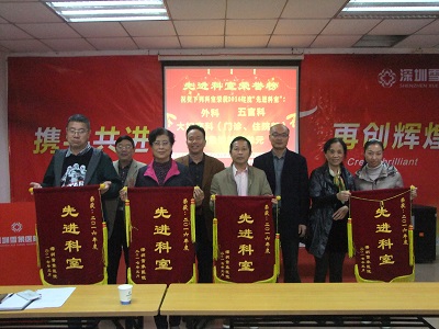 最后,院领导为荣获2016年度的先进科室、优秀员工、先进个人颁发了锦旗和荣誉证书并合影留念。
