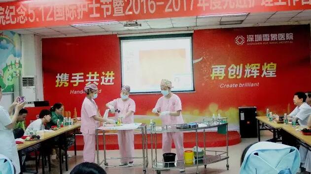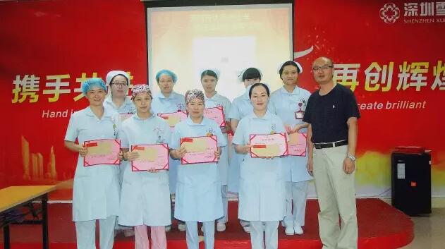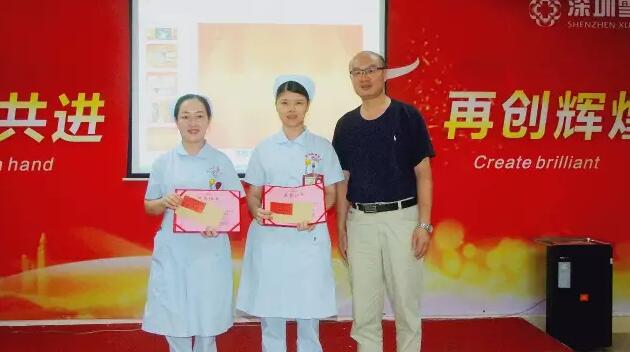 随后,陈瑛副院长宣读了2016-2017年度先进护理工作者表彰决定,供应室李秀琼护士长荣获“深圳市优秀护士长”,门急诊张文娟护士长荣获“深圳市优秀护士”, 产房余蒲芳护士长、综合病区护士长程书侦荣获院级“优秀护士长”,各临床、医技护士周梅秀、戴雪佼、谷晓侠、苏立慧、谢雨芳、曾城妹、巫雨霞等7人荣获“优秀护士”。在本次护士节庆祝活动组织的“身边护士的美”摄影大赛中,产房余蒲芳护士长《迎向新生》荣获一等奖;门急诊护士长张文娟的作品《细心最美》、治疗区护士曾城妹的作品《一丝不苟》荣获二等奖;手术室护士长李秀琼的作品《角落里的天使》、手术室护士长麻莉的作品《无影灯下》、产科病区护士黄惠青的作品《谢谢姐姐》、产科病区护士黄春苑的作品《操练》、产房助产士谢雨芳的作品《无影灯下的岁月》、综合病区护士毛昌秀的作品《认真找血管》、门急诊护士李观玉的作品《温柔的护士姐姐》、《像蝴蝶一样轻盈》荣获三等奖。