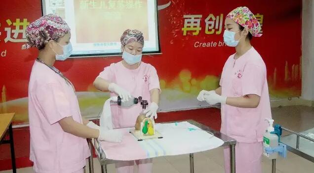 最后,还举行了新生儿心肺复苏操作演练。大会在产房助产士们的精彩操作演练中圆满落幕。