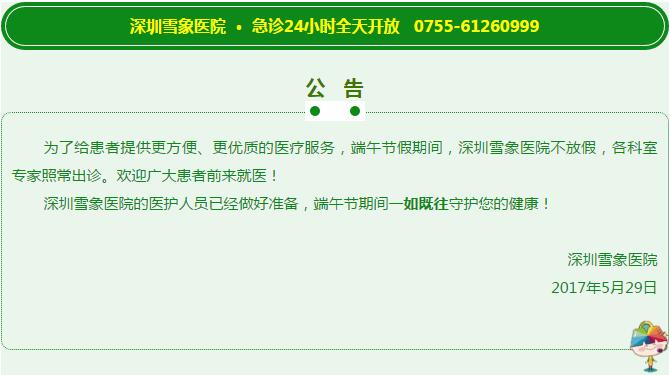 公告|“端午节”雪象医院不放假,医院照常接诊