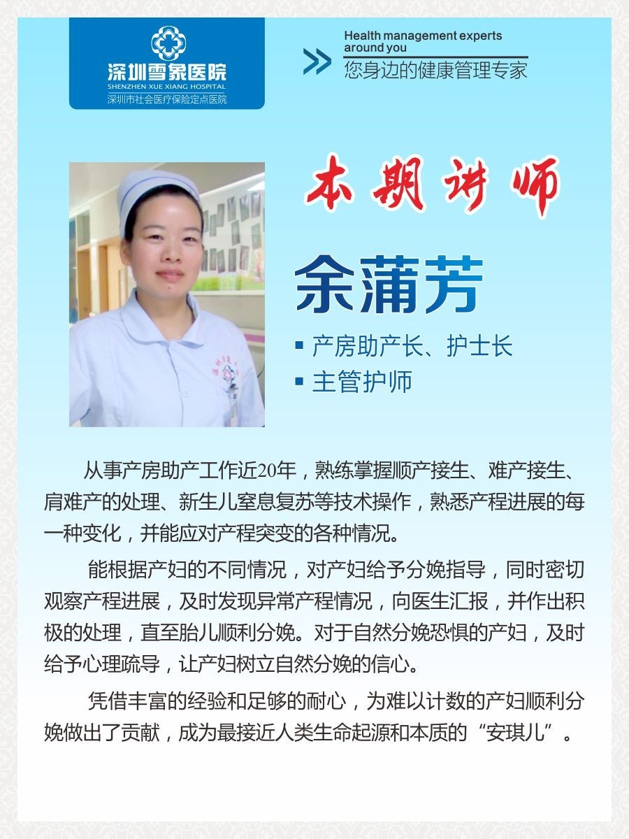 讲师:余蒲芳(产房助产长、主管护师)