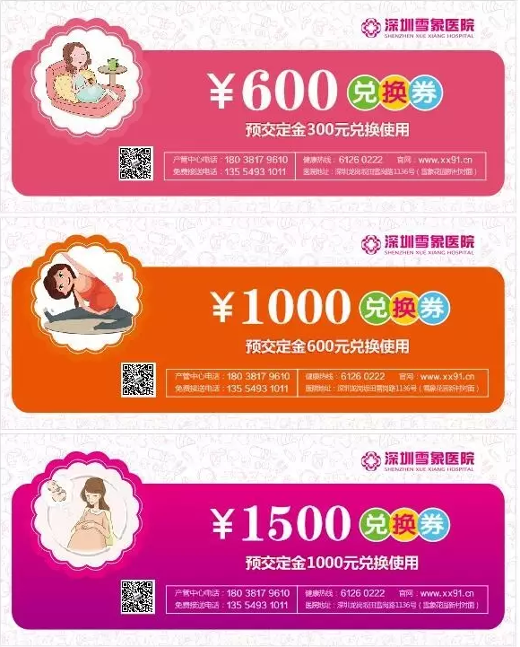 预交住院分娩押金300元,送抵扣券600元;