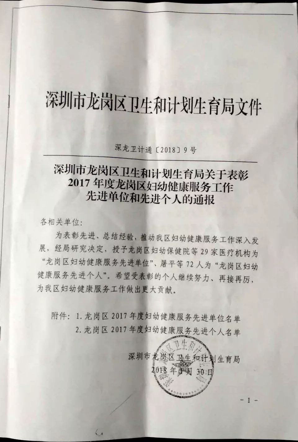 喜报:我院再次荣膺“龙岗区妇幼健康服务信息管理先进单位”荣誉称号