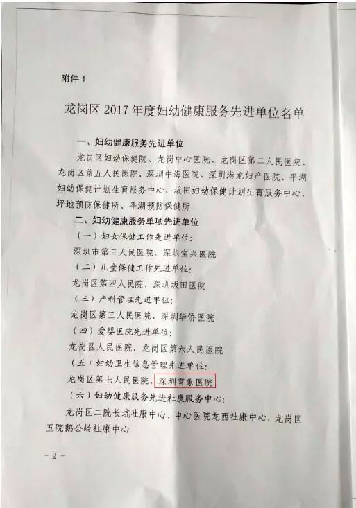 2月1日,2018年龙岗区妇幼健康工作会议在龙岗区妇幼保健院召开,会上通报表彰了2017年度妇幼健康服务工作先进单位和先进工作者,深圳雪象医院再次荣膺“龙岗区妇幼健康服务信息管理先进单位”殊荣,妇产科主任秦照宇同志亦再次荣膺“龙岗区妇幼健康服务先进个人”荣誉称号。