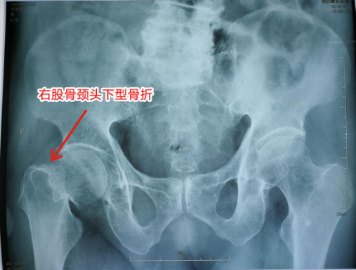 图为老先生术前DR检查结果(右股骨颈头下型骨折)