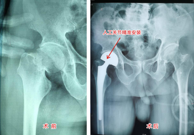 入院后第四天,在麻醉科和手术室的密切配合下,由外科陈荣生主任医师主刀,两位骨科主治医师助手协力,快捷顺利地实施了人工髋关节置换手术,效果精准。