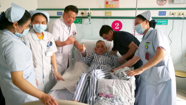 术后第二天,老人在医护人员掺扶下,即开始离床活动。老人及其家人非常开心,看到家门口的雪象医院能为身患多病的高龄老人做好这种高难度手术,一个个伸出大拇指,点赞雪象医院。