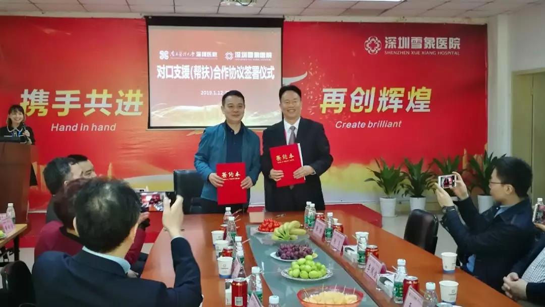 2019年1月12日上午,南方医科大学深圳医院与深圳雪象医院对口支援及医疗联合体合作签约仪式在深圳雪象医院隆重举行,标志着两家医院正式确立对口支援合作关系。