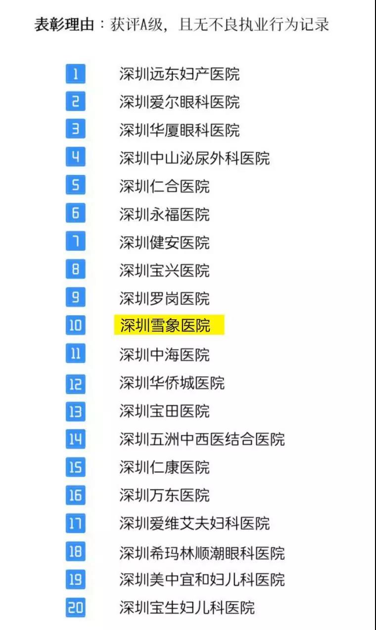 喜讯!喜讯!热烈祝贺深圳雪象医院荣获2018年深圳市非公立医院医疗服务质量评价A级表彰单位
