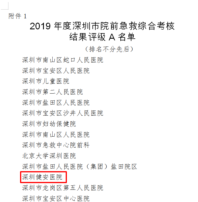 ▲2019年度深圳市院前急救综合考核结果评级A名