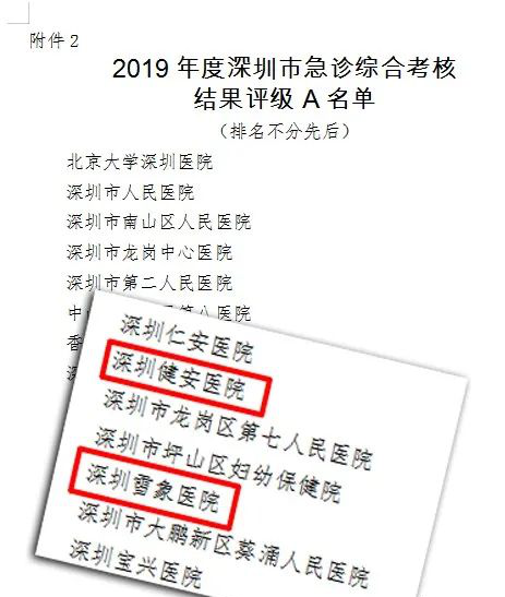 ▲2019年度深圳市急诊综合考核结果评级A名单