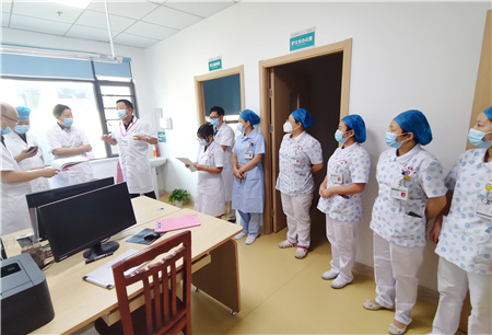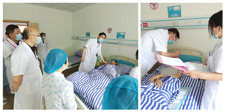 准备好查房必备用品, 护士开启病房门,告诫安慰病友配合查房,住院医生汇报病史,主治医师对病史总结与补充治疗方案介绍、查体并提出诊断治疗问题,主任回答问题并综述该病现状及进展,制定下一步治疗方案,整个查房流程严肃认真,医护配合默契。