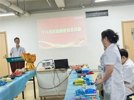 此外,活动还特别设置了“十八项核心制度有奖问答”环节,旨在加深医护人员对医疗质量和安全核心制度的理解与掌握。通过轻松有趣的知识竞赛形式,不仅活跃了现场气氛,也进一步提升了医护人员的专业素养和责任意识。参与者们积极抢答,气氛热烈而活跃,充分展现了深圳雪象医院医护人员积极向上的精神风貌和扎实的专业功底。