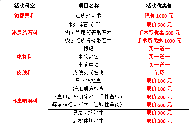 深圳雪象医院各科室特地给大家准备了优惠活动~!