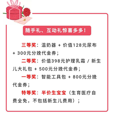 活动期间,凡提前预定分娩可享受预交押金直接抵扣分娩费用优惠活动。