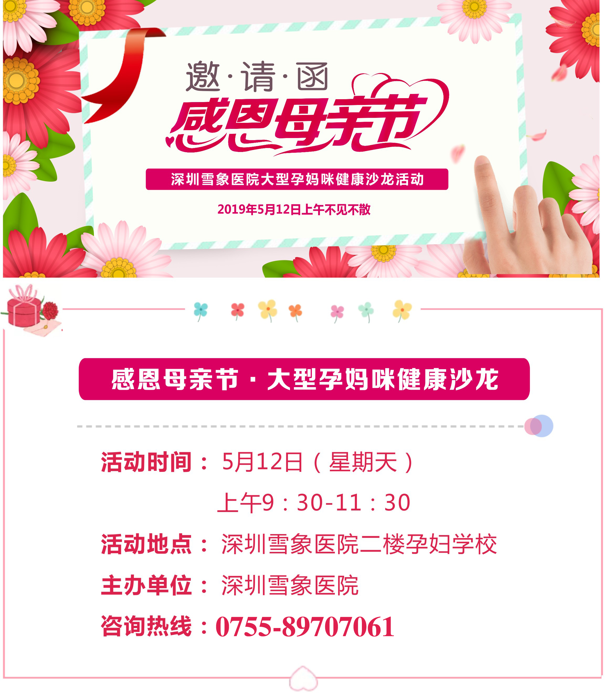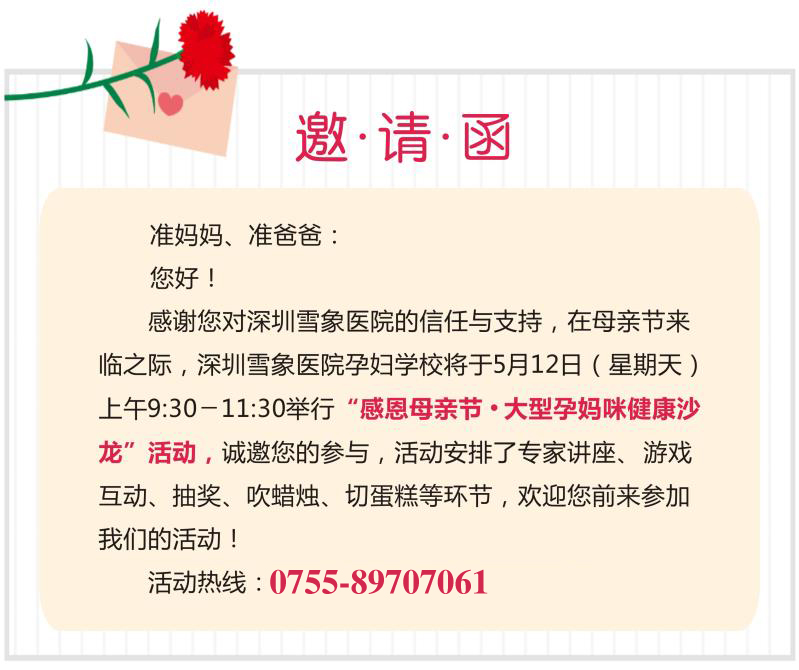 【邀请函】 深圳雪象医院5.12感恩母亲节·大型孕妈咪健康沙龙活动 诚邀您出席